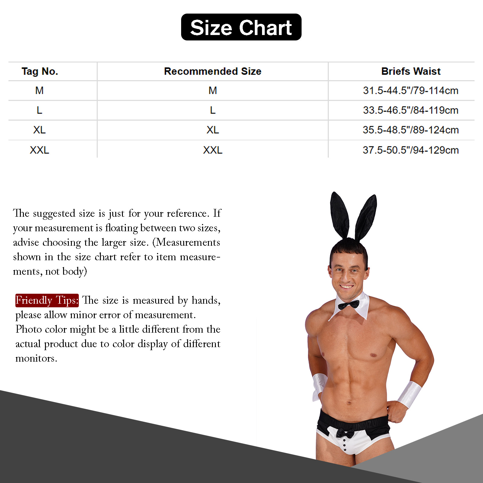 Size Chart: The suggested size is just for your reference. If your measurement is floating between two sizes, advise choosing the larger size. (Measurements shown in the size chart refer to item measurements, not body)